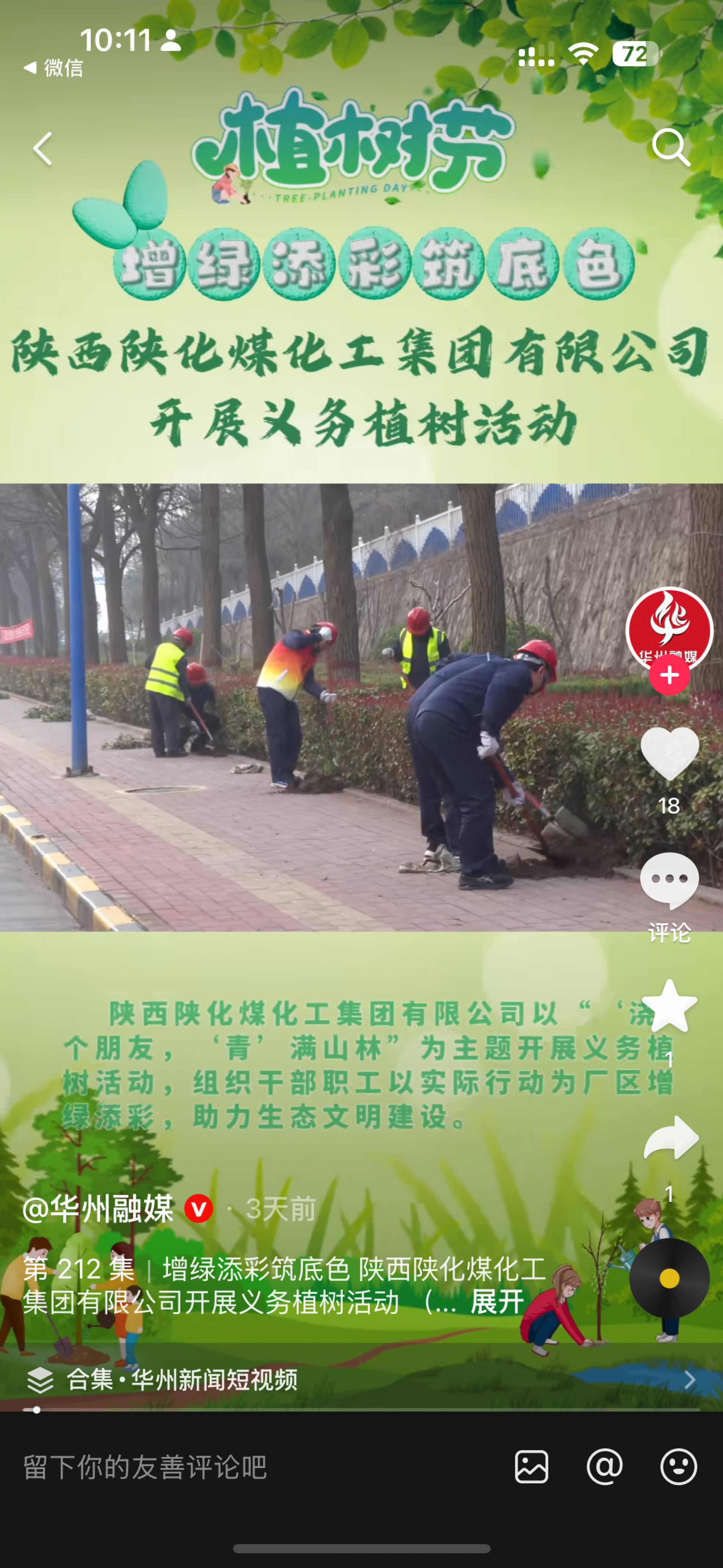 - 03-13華州融媒(抖音):增綠添彩筑底色 陜西陜化煤化工集團(tuán)有限公公司開(kāi)展義務(wù)植樹(shù)活動(dòng)