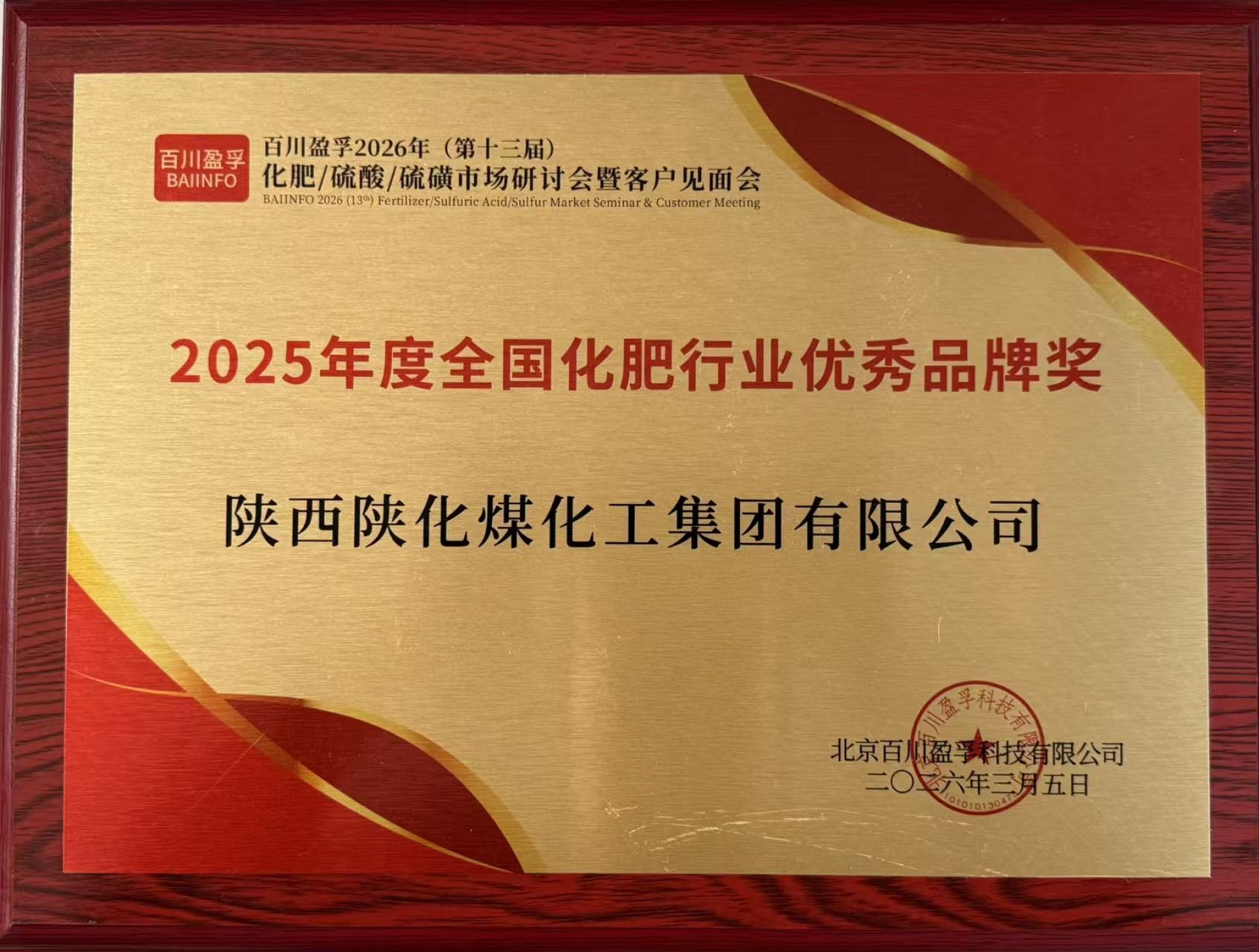 陜化公司獲評(píng)百川盈孚“2025年度全國(guó)化肥行業(yè)優(yōu)秀品牌獎(jiǎng)”稱號(hào)