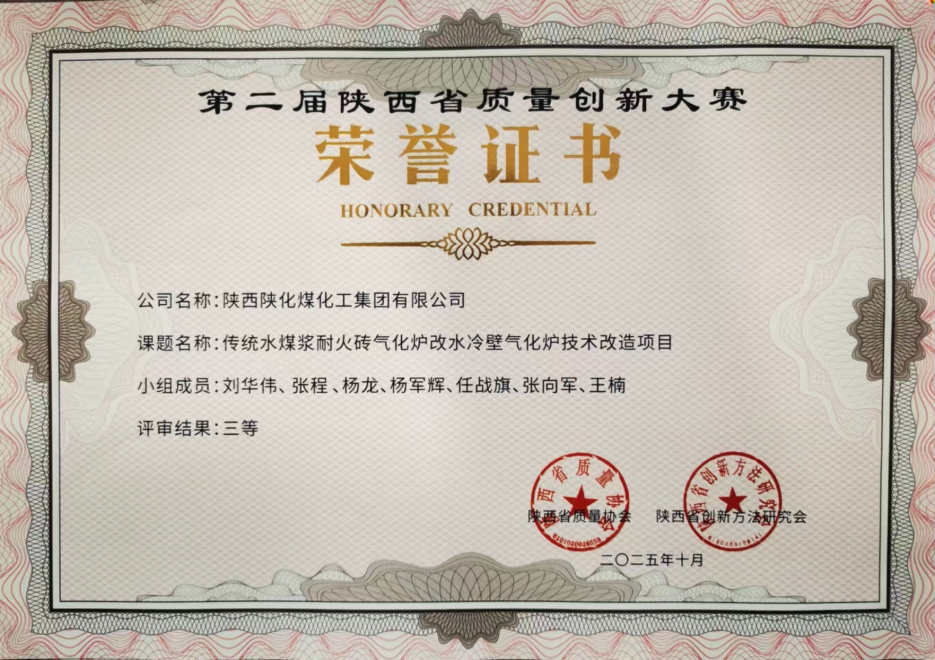 公司獲陜西省質(zhì)量創(chuàng)新大賽三等獎(jiǎng)