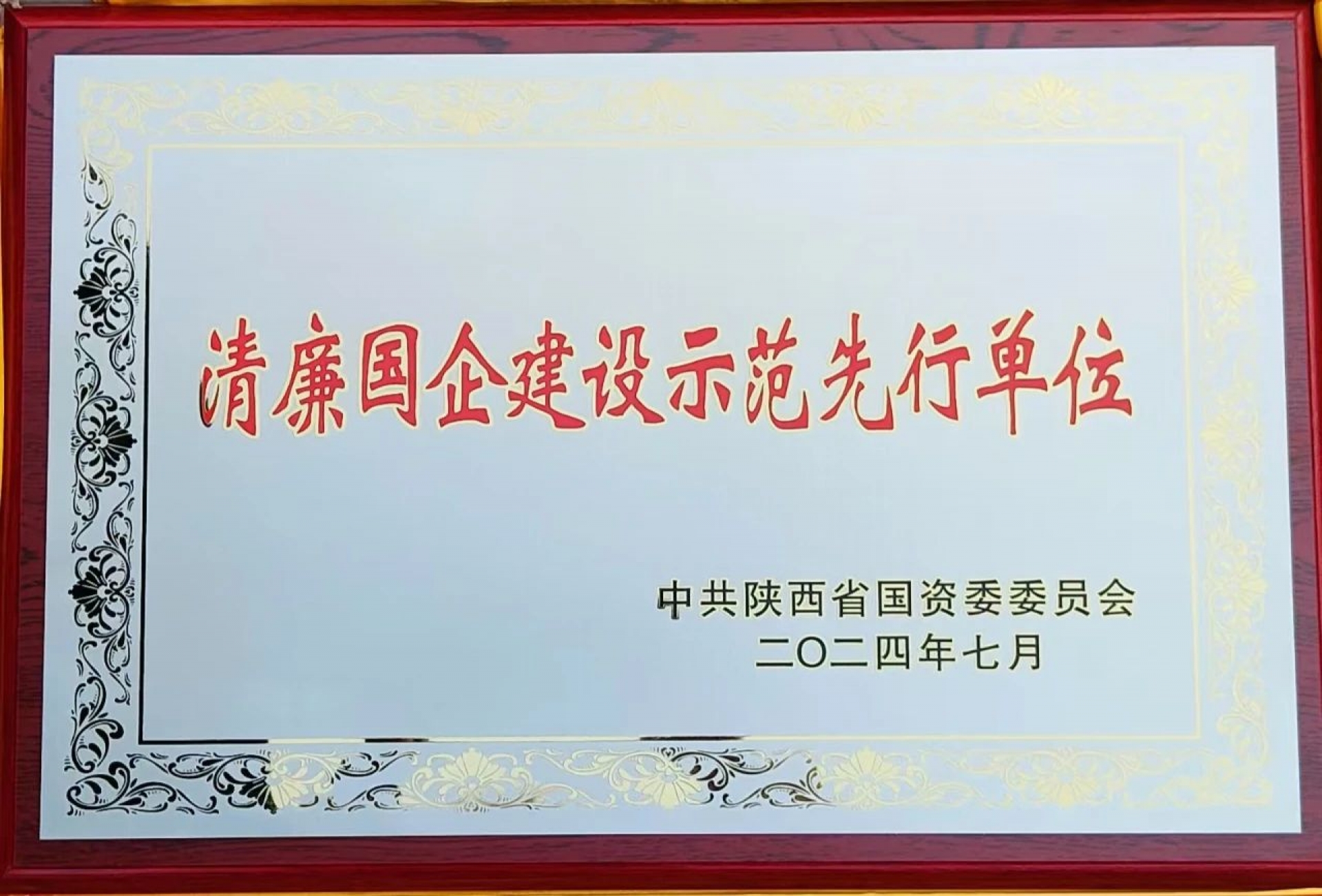 公司榮獲陜西省國資委系統(tǒng)“清廉國企建設(shè)示范先行單位”榮譽(yù)